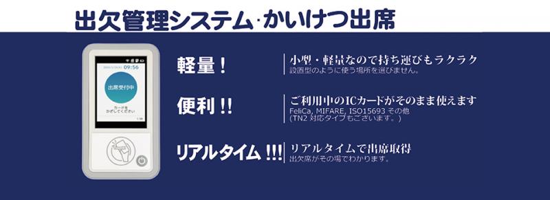 | 機能 | ■かいけつ出席 大学・専門学校の出席管理に ■出欠管理システム 企業の会議・研修の出席管理に |