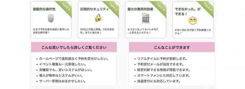 | タグ(関連キーワード) | 予約システム セキュリティ 費用対効果 リアルタイムに予約が更新 予約管理 |