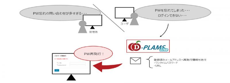 | 特徴 | ■複数ADから情報を取得し、グループ単位などで新規ADに同期が可能 ■管理者へ問い合わせすることなく、 PWを再発行できます ■1機能だけでも気軽に利用ができます ■Web画面からActiveDirectoryのパスワードを変更できます。 大規模アカウント管理パッケージ「D-PLAMS」から派生した簡易版アカウント管理パッケージです。最低限必要な機能に絞ることで低コスト化を図りました。 |