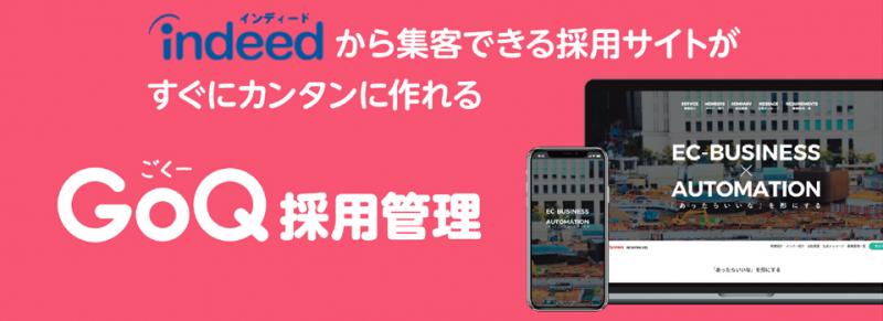 | 商品概要 | 採用サイトの制作、求人検索サイト(Indeed)への掲載、応募者管理機能の3本柱によって、低コストかつ効率的な採用活動の実現をサポート。企業が抱えている様々な採用課題は、GoQ採用管理が解決します! |