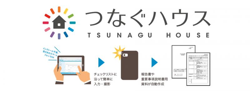 | 商品概要 | 「つなぐハウス」は、インスペクションやリフォームに関するヒアリング結果などを記録・管理できるWEBサービスです。 ユーザ登録するだけでタブレット・スマホ・PC(+デジカメ)ですぐに利用できます。「つなぐハウス」の豊富な機能で、生産性の向上や業務の拡大を手助けします。 現場ではお手持ちのタブレットやスマホで「つなぐハウス」を利用し、調査結果の入力・撮影を行います。報告書の作成ボタンを押すだけで写真付きの報告書が自動で作成され、報告書のとりまとめの手間が一切無くなります。 |