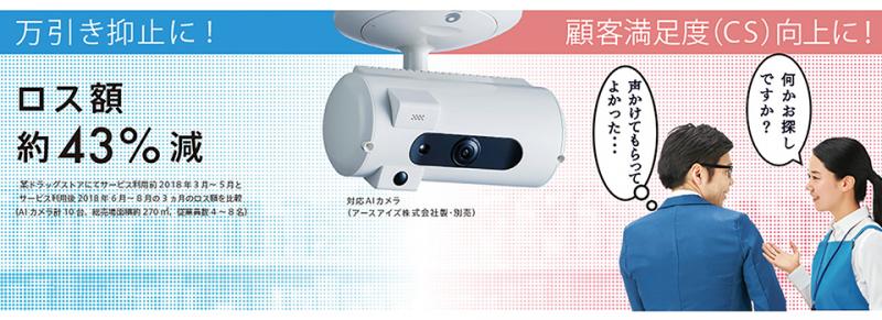 | 商品概要 | 不審行動や、お客さまのお困りの様子を検知し、店員のスマートフォン(専用アプリ)に報告。 「声かけ」で万引き抑止やCS向上につなげるAIカメラ向けプラットフォームサービスです。 |