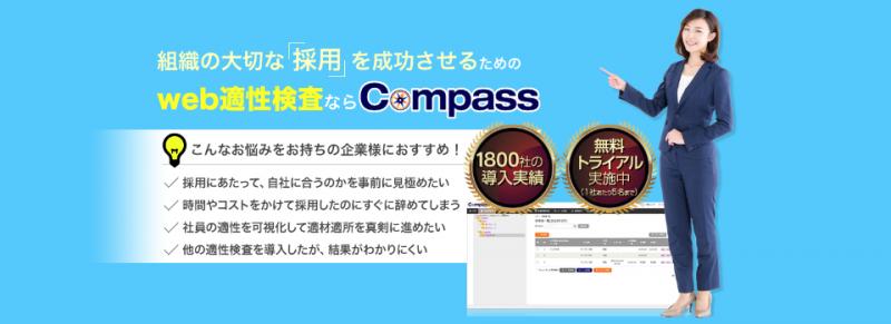 | 商品概要 | Compass は組織の未来を支える人材を採用するための適性検査です。 Compass(コンパス)は、 人材採用担当者が求める「本当に知りたいこと」のリサーチを数年かけておこない、1,000社を超える企業の人事担当者の“本音”を評価項目に反映した検査です。 特に「ストレス耐性」や「対人コミュニケーション」、「抑うつ傾向」など、今の時代に注目度の高い問題を解決するため、より実務に適した研究を重ねて開発しています。 さらに、外国人採用にもご利用いただけるよう、英語・中国語での受検にも対応しています。 |