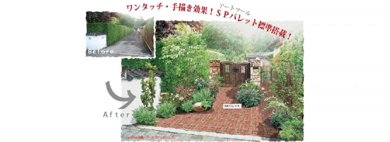 | 特徴 | 現場(デジカメ)写真取り込みでイメージづくり CADパース取り込みでイメージづくり e-Shot造園で直接イメージづくり |