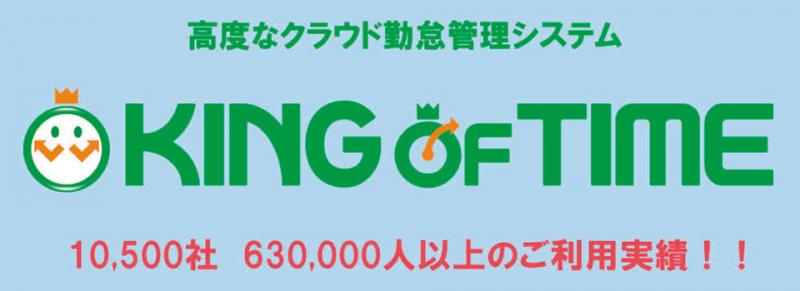 | 商品概要 | 「KING OF TIME」はお手持ちのPCとインターネットだけで、簡単で高度な勤怠管理を行うクラウド型の勤怠管理システムです。 導入実績は10,500社630,000名(2018年3月時点)でクラウド勤怠管理シェアNo.1。 |