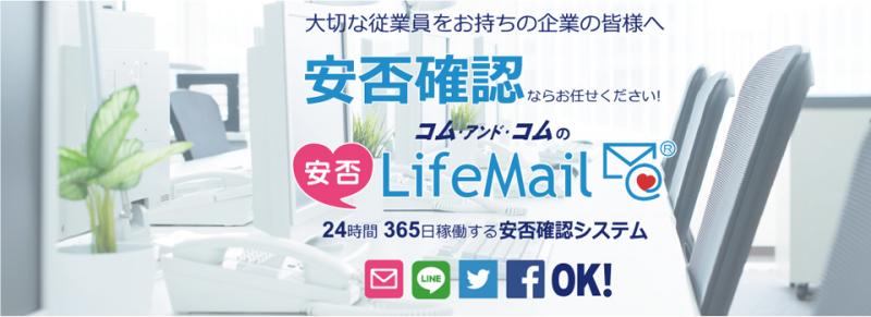| 特徴 | ■ここが違う「安否LifeMail」の4つの特徴 ①一人当たりが安い月額80円 「人数分課金で無理なく運用」 ②安否確認システムで一番歴史が長く 数多くの大震災でも止まらない配信実績 ③業界では「安否LifeMail」だけ‼ 3大SNSに対応 ④経済産業省も表彰した 実績のある安否確認システム |