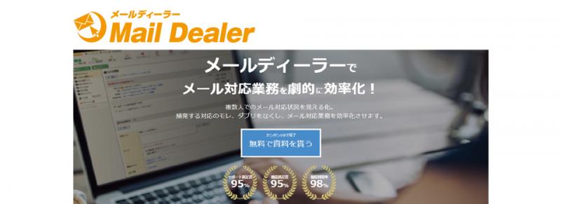 | 商品概要 | 「メールディーラー」は複数名でのメール共有・管理・対応を効率的に行えるメールグループウェアです。お客様からの問い合わせメールへの対応状況や履歴を一目で確認することができるので、対応の漏れや遅れを未然に防ぐことができます。 |