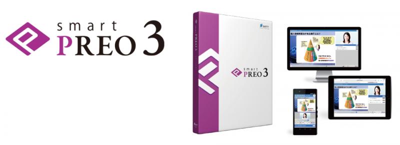 | 特徴 | smart PREO 3 スマートプレオ は、プレゼン+ビデオ(または音声)を組み合わせてeラーニング教材を制作できる、テンプレートツー ルです。 プレゼンなどで使用したスライドと、撮影したビデオや録音した音声があれば、 簡単に講義解説型のeラーニング教材を作成できます。 新機能として、パソコンだけでなくスマートフォン、アンドロイド、タブレットでの受講に対応しました。 より直感的にコンテンツが設定できるPREO Editorを搭載し、ビデオまたは音声とスライドの同期設定が容易になりまし た。 設定された情報は専用のExcelシートにも反映され、編集・修正も手間がかからず、多人数での制作にも向いています。 |