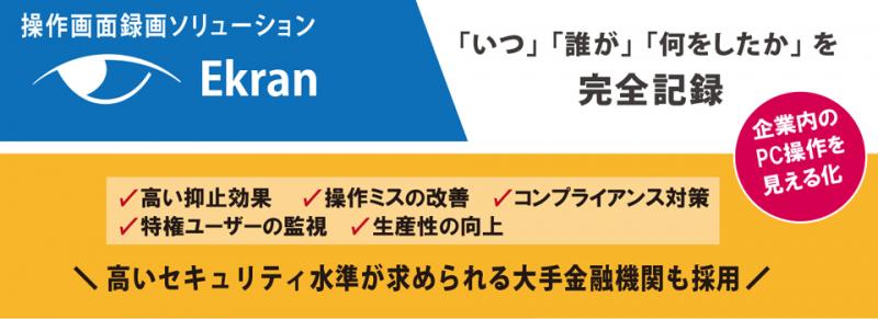 | 商品概要 | Ekranは、 PCやサーバーなどにおけるユーザー操作の解析や操作証跡管理のための製品です。 ユーザーの操作履歴を画像とテキストで完全に記録、再現することができます。 コンピュータで「 いつ」、「誰が」、「何を したか」 が正確にわかるため、社内のコンピュータの誤用や不正操作の抑止と発見、取引先への操作履歴の完全な提供が可能です。 |