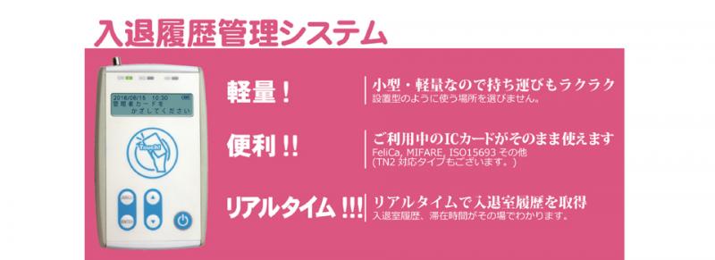 | 商品概要 | 作業時間の管理や物品の貸出管理、利用状況管理等にお使いいただけるシステムです。 ハンディタイプのICカードリーダで取得したデータを基に、入退室の履歴と滞在時間を記録します。取得したデータは、日単位にExcelアプリで管理。誰にでも簡単に操作できます。 |